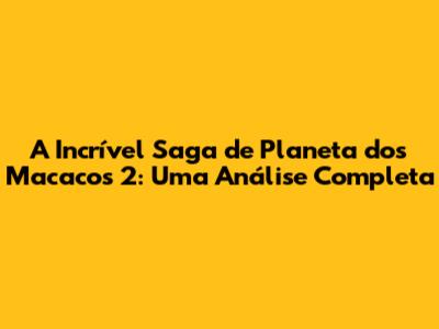 A Incrível Saga De 'Planeta Dos Macacos 2': Uma Análise Completa