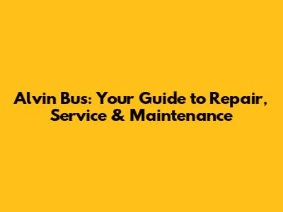 Alvin Bus: Your Guide To Repair, Service & Maintenance