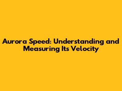 Aurora Speed: Understanding And Measuring Its Velocity