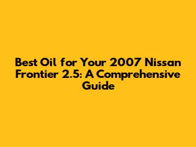 Hey guys! So, you're looking for the best oil for your trusty 2007 Nissan Frontier 2.5? Awesome! This truck is a workhorse, and keeping it running smoothly is key. Choosing the right oil might seem like a small thing, but trust me, it can make a big difference in your engine's performance and longevity. In this guide, we'll dive deep into the world of motor oil, specifically for your 2007 Nissan Frontier with the 2.5-liter engine. We'll cover everything from the recommended oil type and viscosity to the importance of regular oil changes and some helpful tips to keep your engine humming. Let's get started and make sure your Frontier stays a reliable companion for years to come. Buckle up, because we're about to become oil experts!