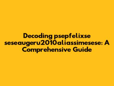 Decoding Psepfelixse Seseaugeru2010aliassimesese: A Comprehensive Guide