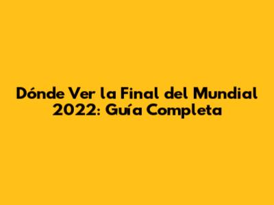 Dónde Ver La Final Del Mundial 2022: Guía Completa