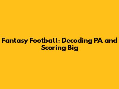Fantasy Football: Decoding PA And Scoring Big