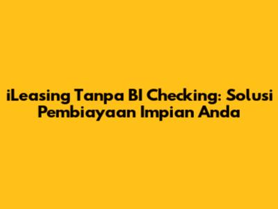 iLeasing tanpa BI Checking menjadi topik hangat bagi banyak orang, terutama mereka yang membutuhkan pembiayaan namun memiliki riwayat kredit yang kurang sempurna. Artikel ini akan membahas secara mendalam tentang iLeasing, keuntungan, persyaratan, dan bagaimana cara mendapatkannya tanpa harus melewati proses BI Checking yang seringkali menjadi penghalang. Jadi, buat kalian yang sedang mencari solusi pembiayaan, simak terus ya!