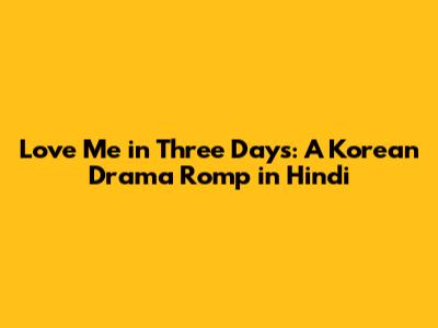 Love Me In Three Days: A Korean Drama Romp In Hindi
