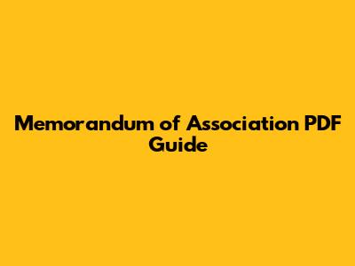 Memorandum Of Association PDF Guide