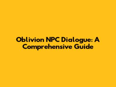 Oblivion NPC Dialogue: A Comprehensive Guide