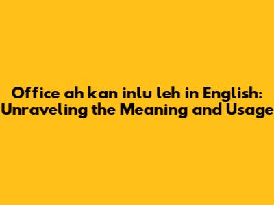 Hey guys! Have you ever stumbled upon the phrase "office ah kan inlu leh" and scratched your head wondering what it means? Well, you're not alone! This phrase originates from a specific language and understanding its English translation and context can be super helpful, especially if you're interacting with people who use it. Let’s dive deep into this intriguing phrase and explore its meaning, usage, and cultural significance. By the end of this article, you'll not only know what it means but also how to use it correctly. So, buckle up and let’s get started!