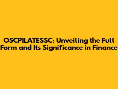 OSCPILATESSC: The Complete Guide To Its Financial Role