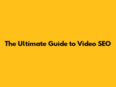 The Ultimate Guide To Video SEO
