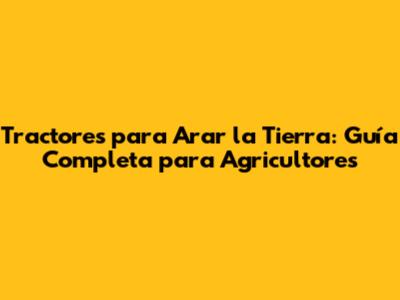 Tractores Para Arar La Tierra: Guía Completa Para Agricultores