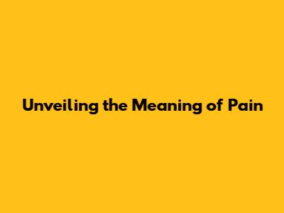 Unveiling The Meaning Of Pain