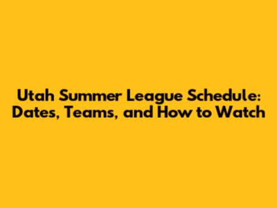 Utah Summer League Schedule: Dates, Teams, And How To Watch