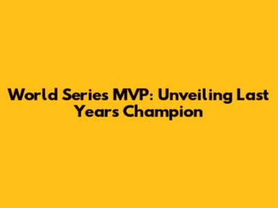 World Series MVP: Last Year's Winner Revealed!